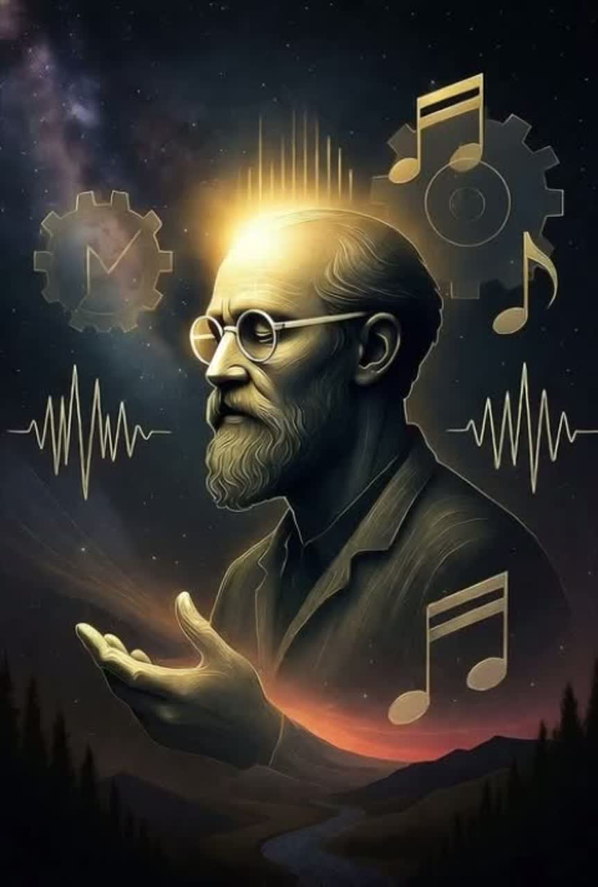 Music: building-tempo, syncopated pulses, dynamic shifts from chaotic highs to tense emotional lulls, builds with jagged synths and with reverb layers, ending in eerie echoing silence, Vocals: countertenor, full choir, male, syncopated, gruff, old