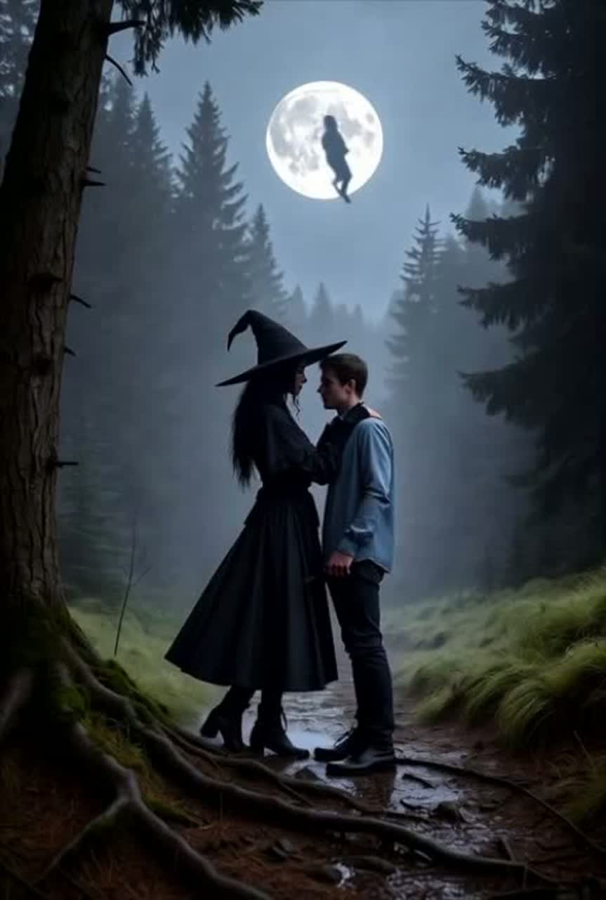 orchestral duet (male tenor + female soprano/alto), with dark gothic atmosphere, Latin refrains, emotional intensity, symphonic background, subtle Gregorian choir harmonies, Like “Time to Say Goodbye” but darker, melancholic, and powerful, Tempo: Slow to moderate