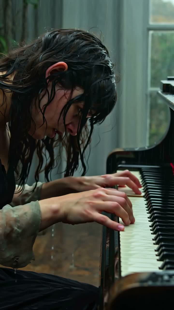 A dark alternative solo piano piece with haunting minor-key motifs and unexpected chord progressions, The left hand weaves brooding arpeggios, while the right explores dramatic melodic flourishes, Sparse pedal use emphasizes tension, letting ominous silences linger between phrases
