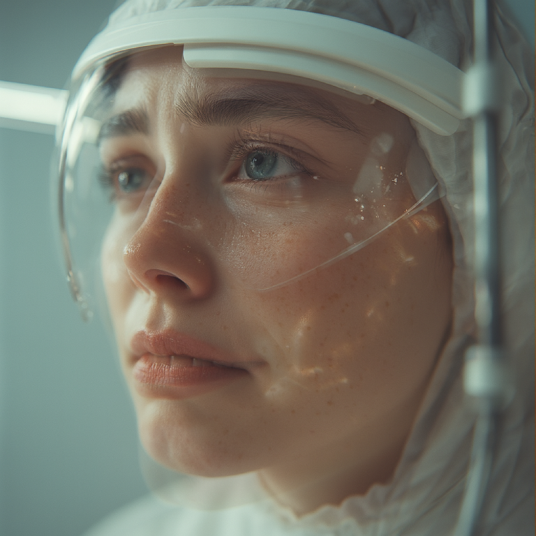 ambient electronica with cinematic pads, floating drones, soft evolving textures, sparse glitched percussion, warm analog hum, immersive stereo field, calming and futuristic, Spoken-word vocals instead of singing: soft, intimate, gently paced, slightly whispered tone, like a guide or narrator inviting the listener into a conceptual experiment, Minimal melodic elements, slow tempo, reflective and welcoming mood, subtle tape warmth and gentle delay on the voice, clinical yet comforting atmosphere