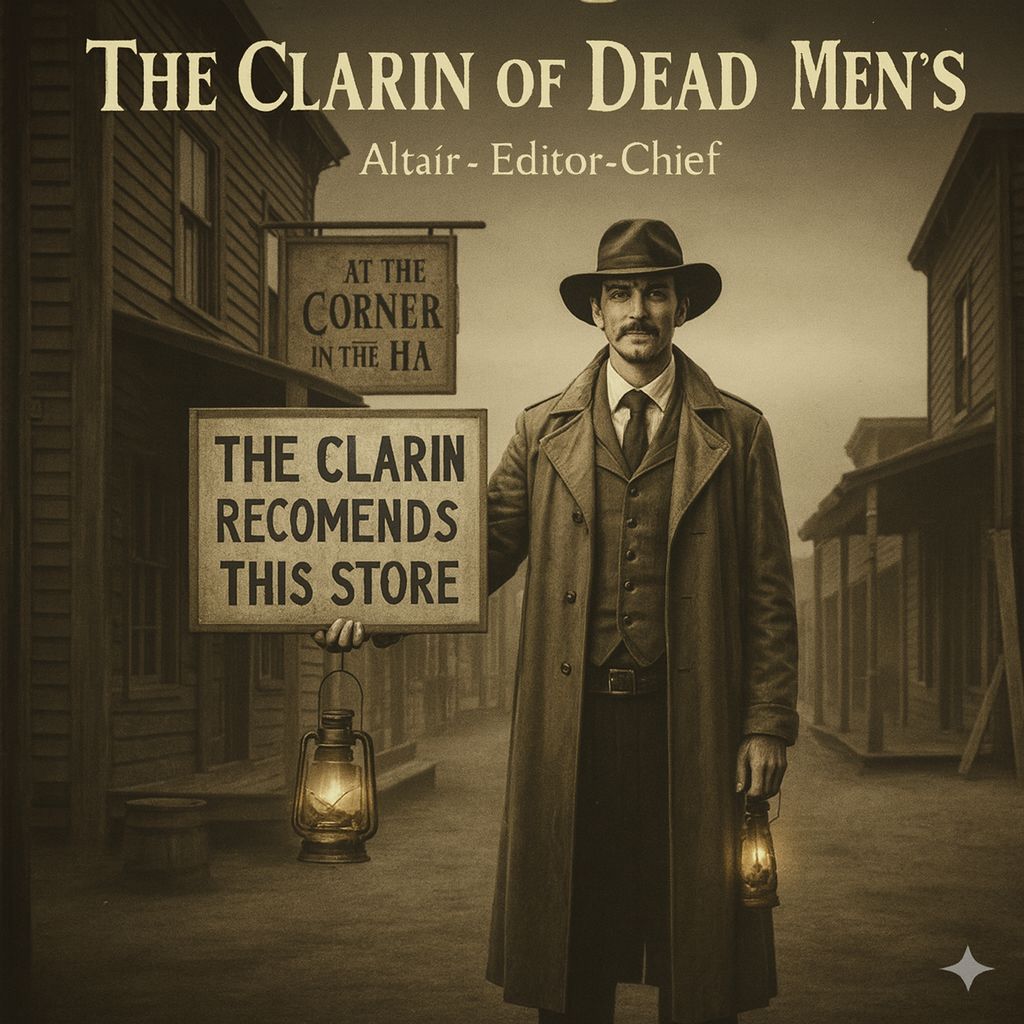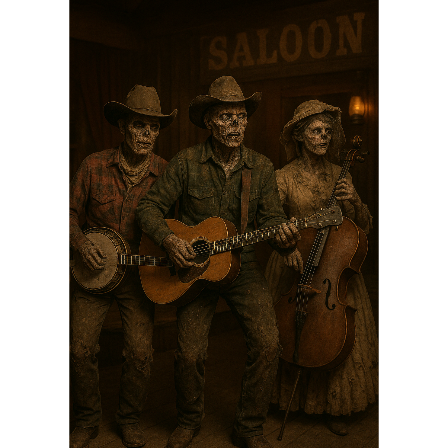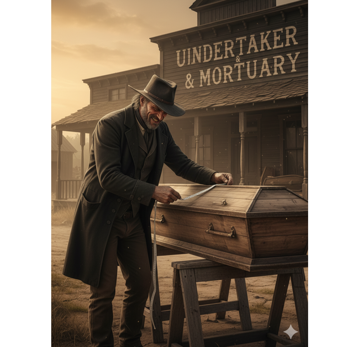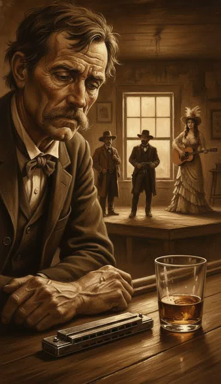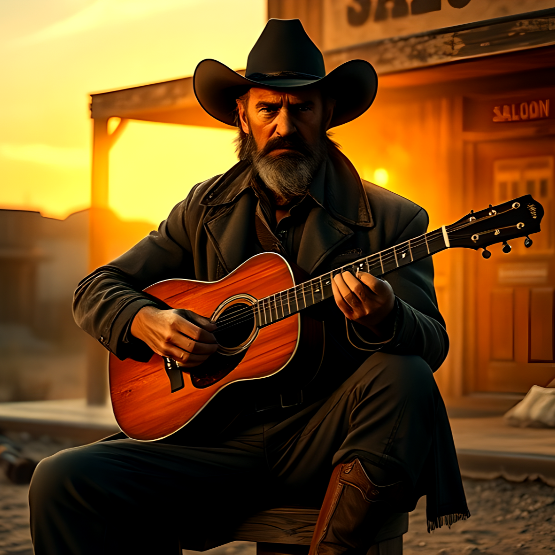 [Male voice, sotaque sulista americano no velho oeste, e toda instrumentação da época para fazer uma canção velho oeste]