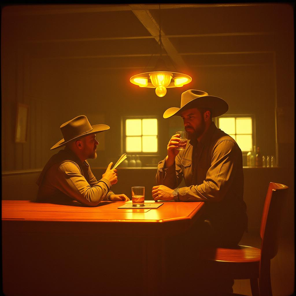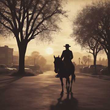 Country rock, acoustic and electric guitars, soulful male vocals, harmonized backing vocals, steady rhythmic drums, subtle percussion, storytelling lyrics, dusty road atmosphere, warm analog mix, expressive harmonica, emotional but restrained, moderate tempo, swinging groove, live-feel instruments, evocative, minimalistic yet dynamic, flowing and lively, cinematic tension, heartfelt and raw, energetic guitar riffs, ambient town sounds, rustic and authentic
