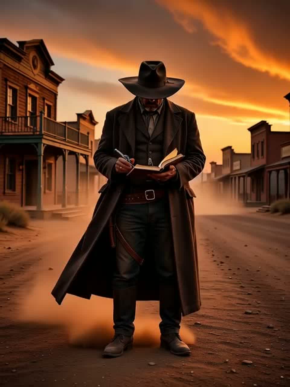 [Cinematic western–folk / country-blues track, male lead vocal: warm, smoky, emotional, strong in the chorus, Tempo ~90 BPM, 4/4, Instruments: acoustic guitar (fingerpicking), slide electric guitar, harmonica, upright bass, brushed snare, subtle cello, soft male and female choir layers in chorus, Add distant saloon ambience and gentle galloping hoof percussion, Mood: legendary, emotional, vengeful but compassionate — like a two lone western vigilantes riding across the desert, Build intensity: male quiet raspy spoken intro → intimate verses → strong, wide chorus → soft emotional bridge → powerful final chorus → fade-out with harmonica, Masterpiece Production, Audiophile Quality, 1960s Neumann U47 Vocal Tone, Martin D-28 Acoustic Guitar, [Latin-infused blues rock solo performance] Single PRS electric guitar, Crisp High-End, Wide Stereo Field, Intimate]