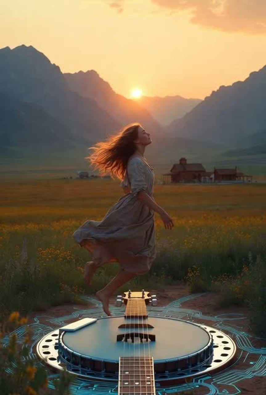 An experimental and highly dynamic Progressive Metal track that fuses traditional, joyful Bluegrass with heavy, technical Djent, The song shifts abruptly between two styles: the verses are pure, upbeat Bluegrass featuring frantic banjo picking, fiddle, and acoustic guitar, The choruses and breakdowns are pure Djent, with down-tuned, 8-string guitars playing complex, syncopated, chugging riffs and polyrhythmic drums, A clean, beautiful, and slightly ethereal female vocal soars over both sections, telling a story of a pioneer girl finding joy on new, untamed land