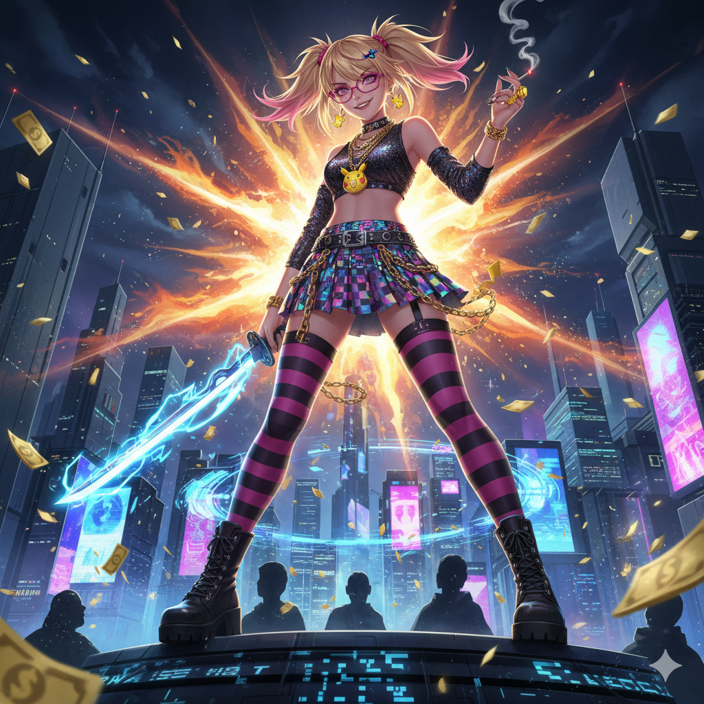 A high-energy EDM Christmas anthem with female vocals, aggressive dubstep drops, gritty basslines, and heavy sidechain compression, Includes festive elements like sleigh bells and icy synths, but twisted and glitched into dark, high-intensity club energy, Vocals are bold and playful with a rebellious tone, Structure includes a melodic build, tension riser, and explosive distorted drop, Perfect for raving through a blizzard with broken candy canes and bass cannons