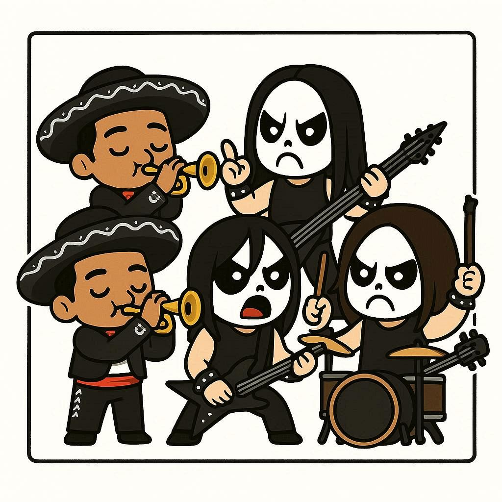 *(A blistering death metal/trumpet hybrid for a dark anime intro—think *Attack on Titan* meets *ballroom swing* *Death Metal:** Bleeding Through screams + horn solos