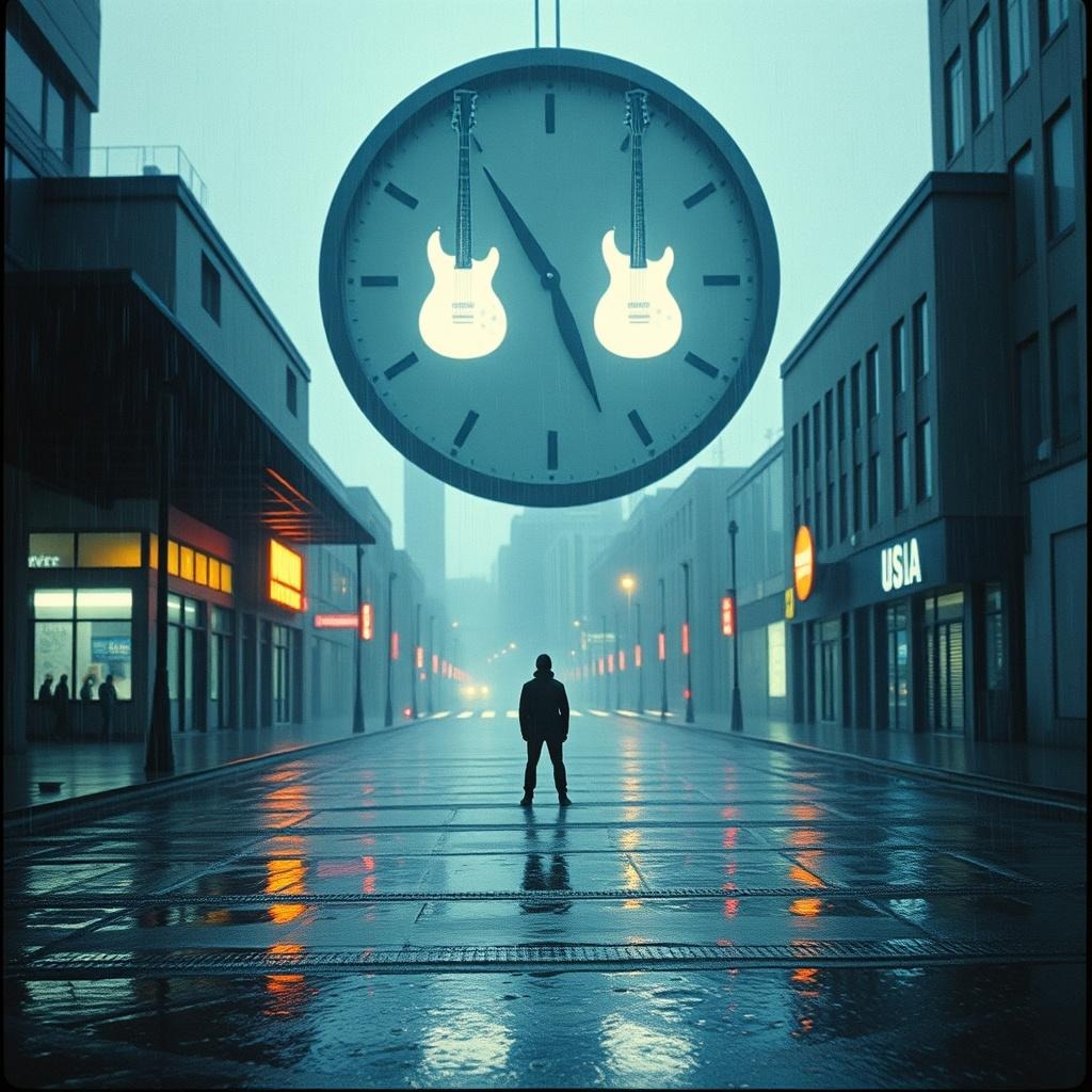 alternative rock, melancholic rock, 118 BPM, clean electric arpeggios, chorus-drenched lead guitar, overdriven rhythm guitar, upright bass accents, brushed snare kit, tape saturation, plate reverb, analog delay, dynamic build, bittersweet longing, restrained lift, halftime chorus, 90s alt rock, orchestral guitar layers, cinematic, epic, dark, intense