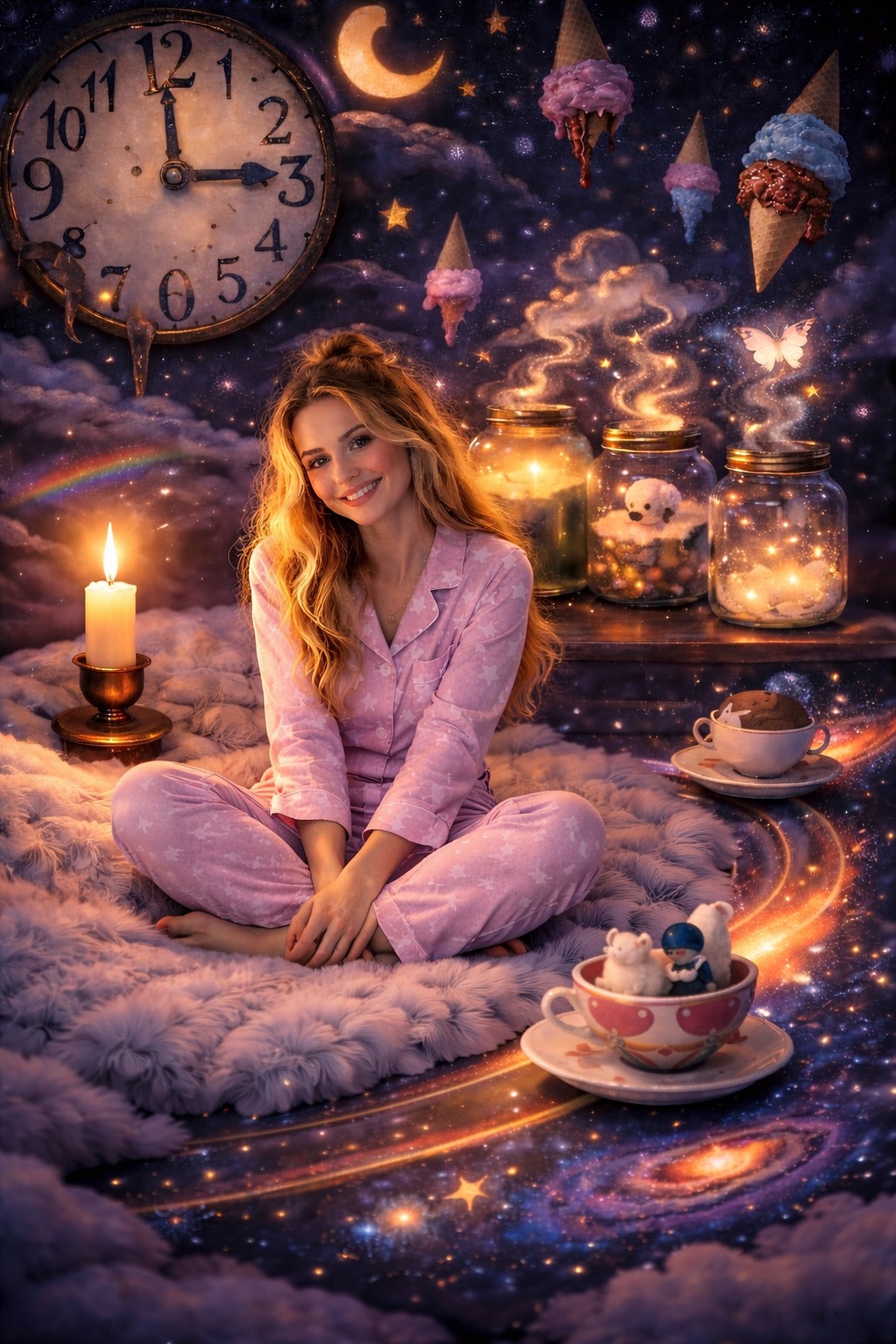 [Mood: Cosmic Euphoria, Weightless, Pastels & Neon, Retro-futuristic, Whimsical, Starlight Serenity]