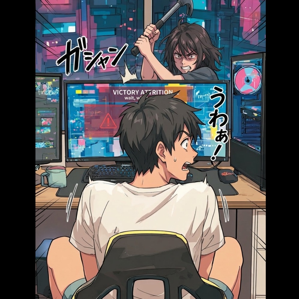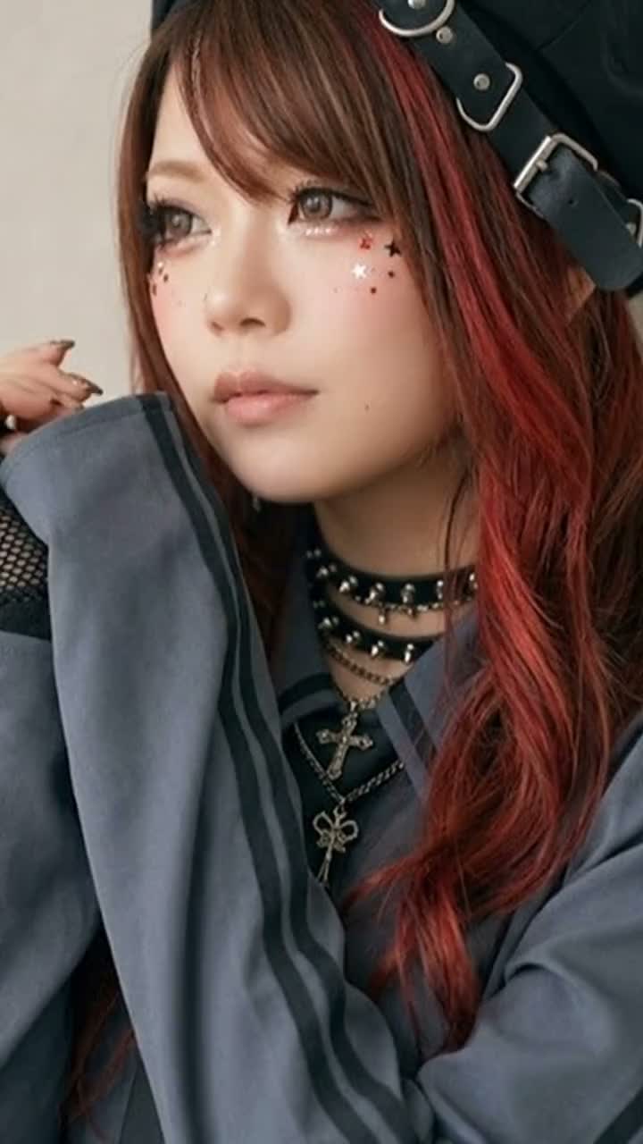hardstyle, j-rock, 155 BPM, distorted kick, gated snare, rave synth lead, sawtooth brass stabs, octave bassline, crunchy power chords, turntable risers, vinyl grit, sidechain pumping, hard-clipped master, arena reverb, explosive chorus, dark kawaii, triumphant drive