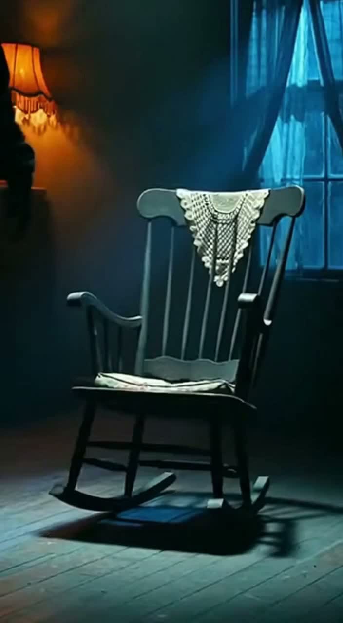 A deeply unsettling horror track built around creaking wood, distant whispers, and an old rocking chair moving by itself in an empty house at 3AM, Starts minimal and tense with eerie room tone, faint wind, and a slow rhythmic wooden creak acting as percussion, The hooks explode into manic, layered laughter chants with distorted backing vocals, heavy sub bass pulses, and aggressive industrial drums, Verses feel paranoid and theatrical, like someone warning you in a candlelit attic, Vocal delivery shifts between whispering, taunting, and frantic shouting, Background textures include reversed lullabies, warped music box tones, distant childlike humming, and subtle glitch artifacts