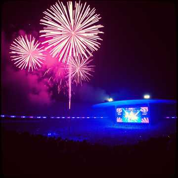[FX] live ambience, stage feedback hum, mic pops, audience clap loop, delay tails, pyrotechnic whoosh