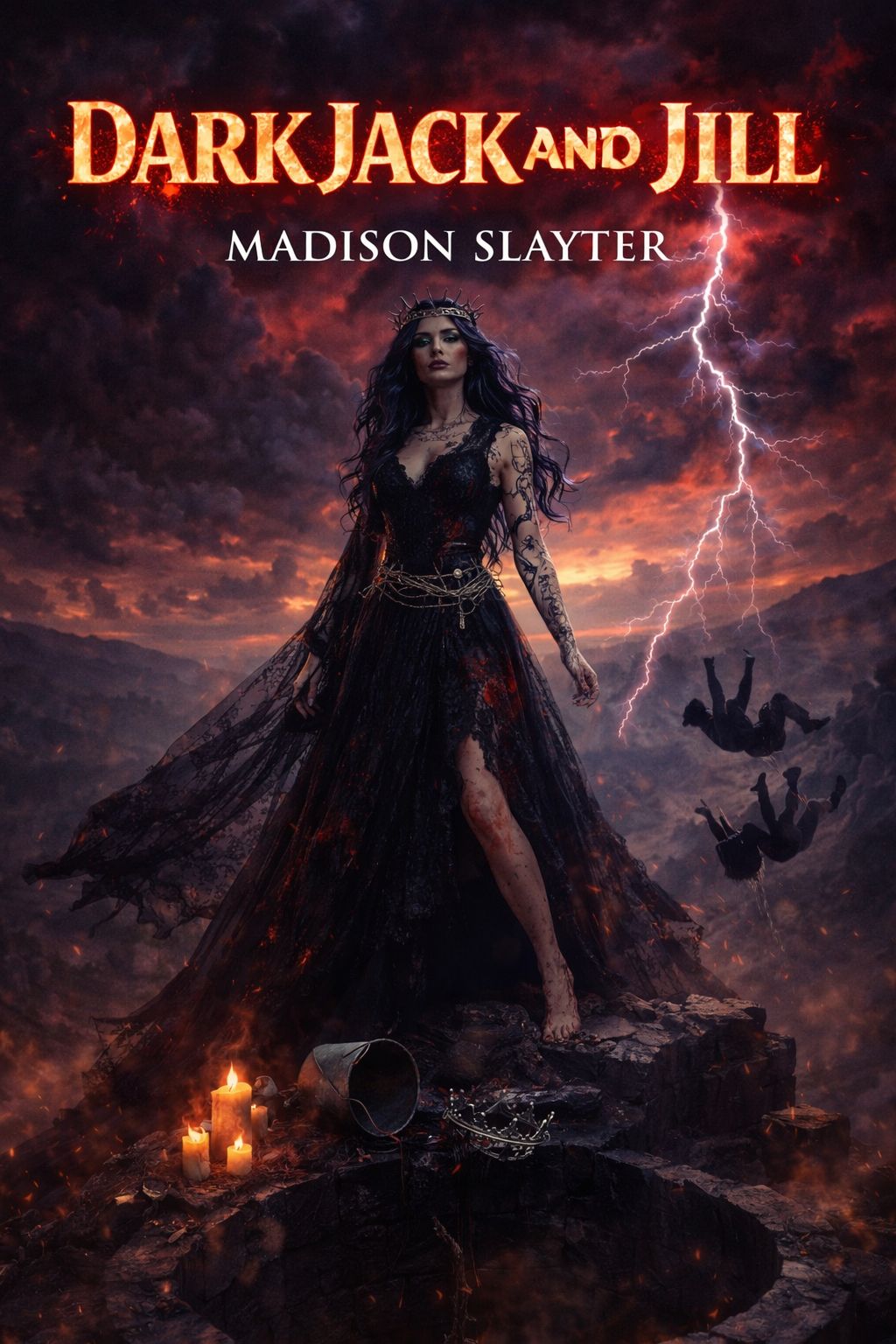 dark gothic folk rock, tolling bells, haunting violin, pounding tribal drums, atmospheric synths, intimate yet cinematic production, powerful female lead vocals, bright brassy coloratura soprano, extreme vocal agility with fast runs trills leaps, powerful belts, smooth falsetto flips, slight vocal fry, nasal-forward resonance, high-drama emotional delivery, crystal clear diction, seductive sassy attitude