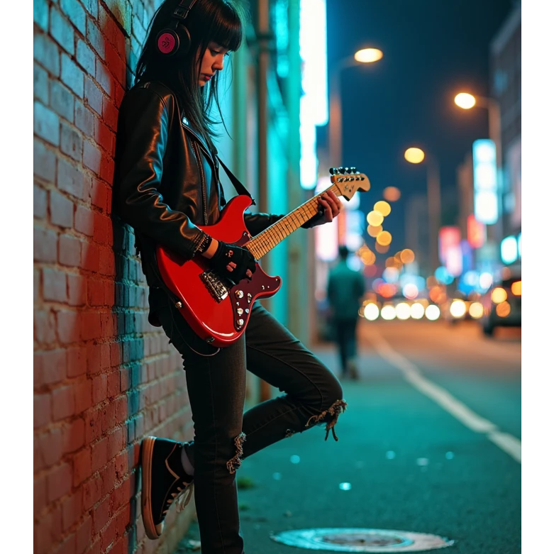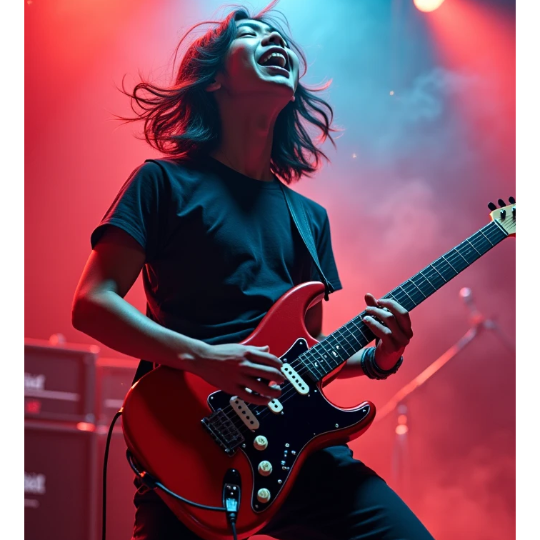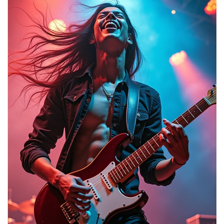 A Dangdut-Prog Djent/Blues-Rock/Jazz Fusion Party Anthem, Vocals: Dangdut’s passionate vibrato, but with rock grit, Guitars: Djent chugs + blues bends + jazz-fusion arpeggios, Rhythm: Kendang meets prog odd-meter, with a 4-on-the-floor dangdut chorus, Party Vibe: Lyrics celebrate musical rebellion—"No rules, just groove!"