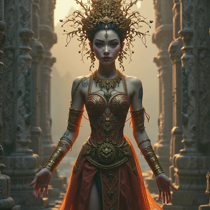 Indonesian pop-rock with dark, cinematic production and traditional hints, Indonesian Female Voice, Vocals: Raw, emotive delivery, but with modern tuning, Genre & Style: