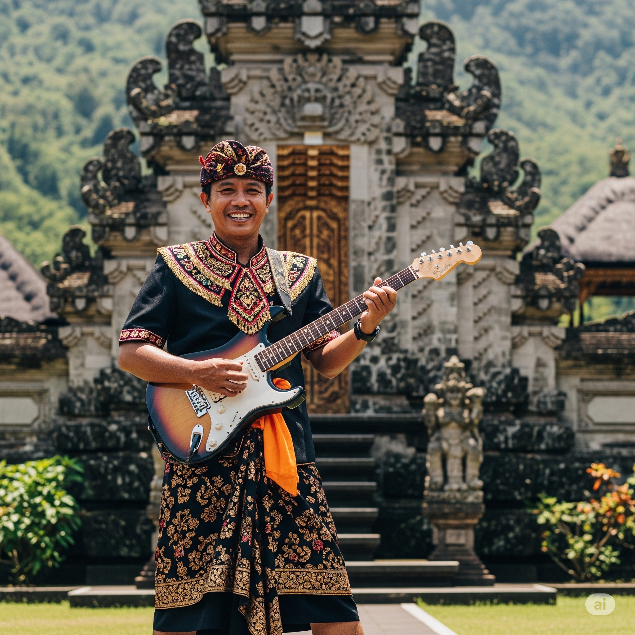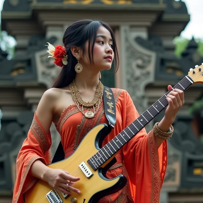 A Progressive Djent/Blues-Rock/Jazz Fusion Ode to Bali, Infused with Traditional Gamelan & Balinese Melodies, Musical Style:
