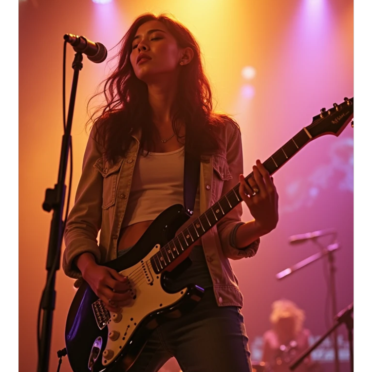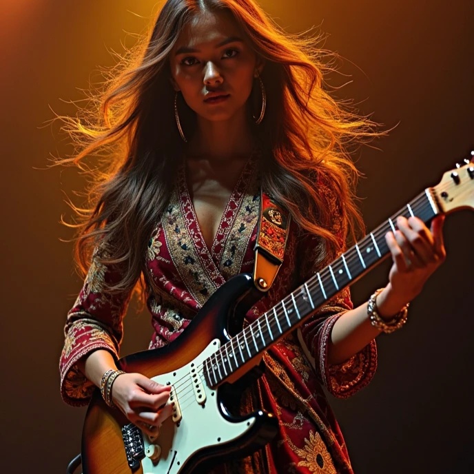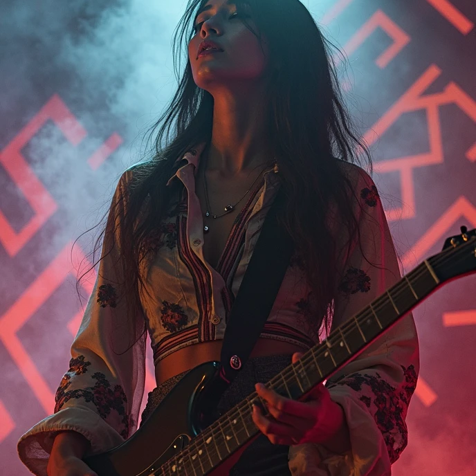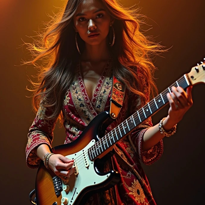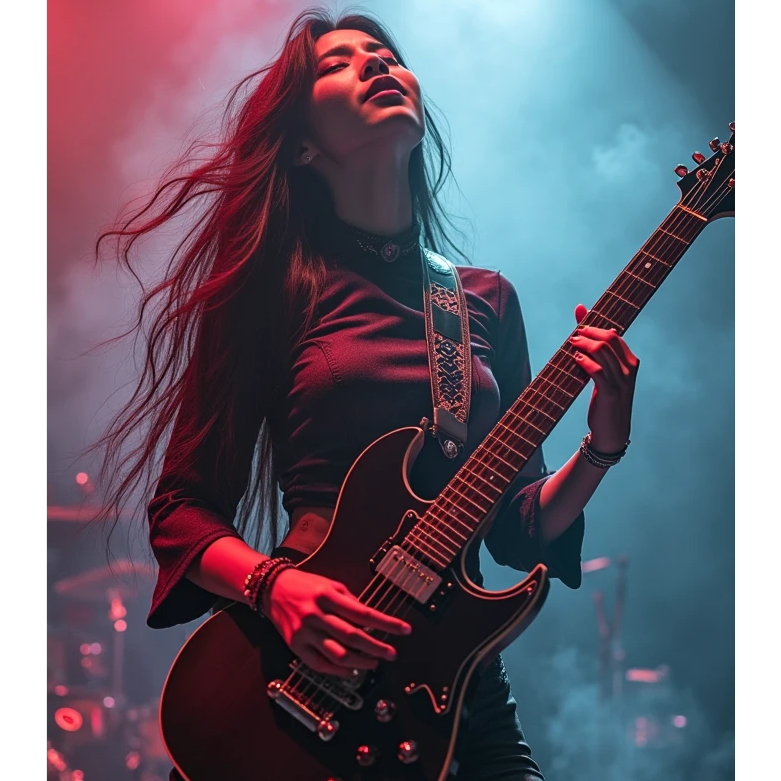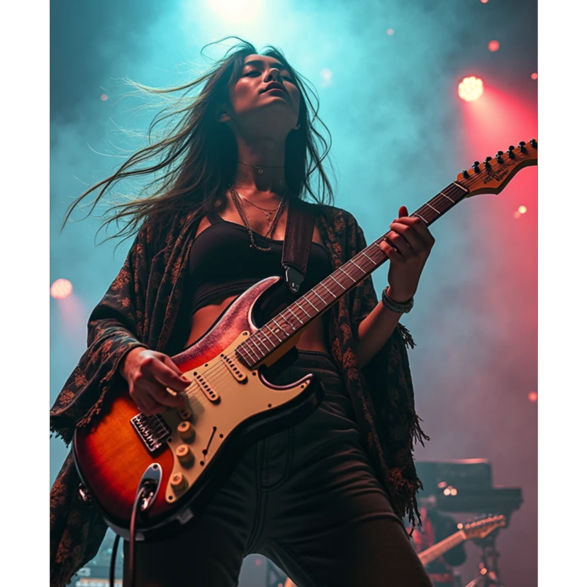 Prog/Djent: Polymetric grooves, extended-range guitars, syncopated rhythms, Blues-Rock: Soulful bends, smoky pentatonic solos, gritty slide guitar, Jazz Fusion: Complex harmonies (add9, sus4, altered dominants), saxophone improvisations, Balinese Traditional: Gamelan (metallophones, gongs), Suling (bamboo flute), Kendang (double-sided drum), Rindik (bamboo xylophone), (Modern Equivalents: Gamelan ≈ Marimba + Glockenspiel / Suling ≈ Shakuhachi or Bass Flute / Kendang ≈ Hybrid Acoustic-Electronic Kit)