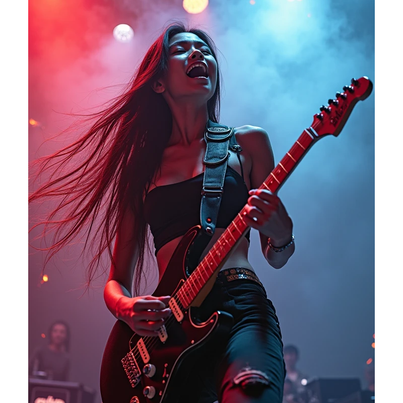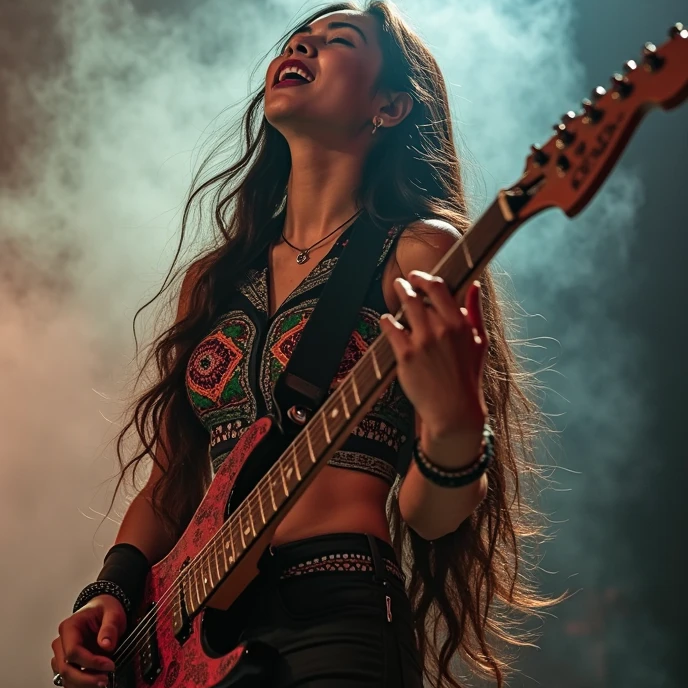 progressive metal intensity, Brazilian rhythmic nuances, and shredding virtuosity, Indonesian Female Vocal: