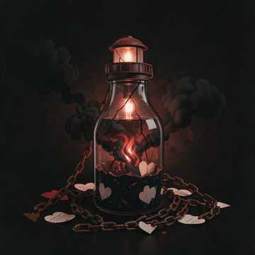 female vocals, androgynous thin girl, dark seductive fragile voice, intimate close mic whisper, breathy strained tone, unstable pitch, trembling cracking voice, choking breath, raspy vocal fry, obsessive delivery, slow drawn phrases, toxic attraction and self-hatred, confusion why someone loves her, fear of dragging him into darkness, vulnerability to aggression, sudden sharp scream bursts, unstable psyche, inner lighthouse dead then violently igniting