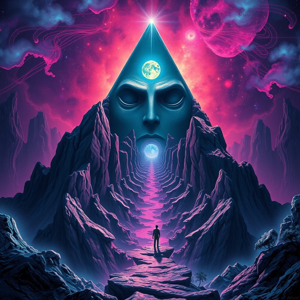 Write a psychedelic rock song with hypnotic, trance-like energy, The lyrics should explore an inner journey, expanding consciousness, and confronting fear or the unknown, Use vivid, mystical imagery: serpents, doors, wind, light, shadow, sand, fire, Include repetition to create a hypnotic effect, Style: Psychedelic rock, dark and mysterious, sensual and intense, Instruments: Electric guitar with delay/reverb, deep bass, drums with steady groove, organ or synth for atmosphere
