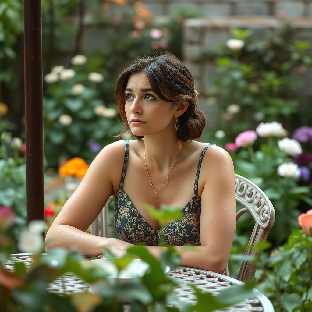 Soft acoustic ballad with gentle fingerpicked guitar, warm upright piano, and subtle ambient textures (light birdsong, soft breeze FX) to evoke a peaceful garden atmosphere, Female lead vocals — tender, expressive, clear — with subtle harmonies in chorus and bridge, Production should build very slightly in the final chorus with layered harmonies and light string swells (cello, viola), No drums until final chorus — use only a soft kick + brushed snare if any, Overall vibe: stillness, gratitude, presence, nature, healing