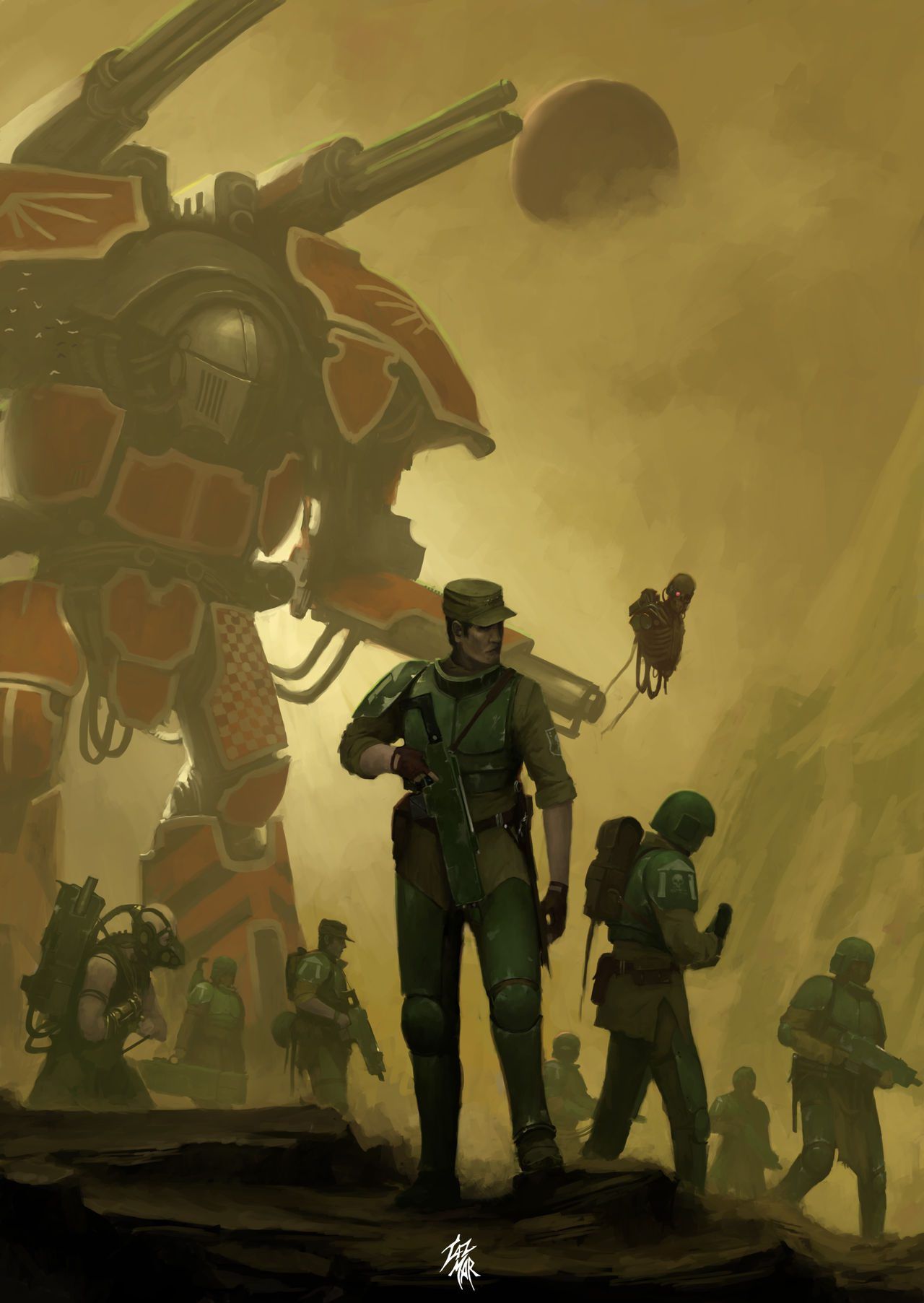 Low strings, muted brass, military snare drum, soft piano, distant choir, minimal percussion