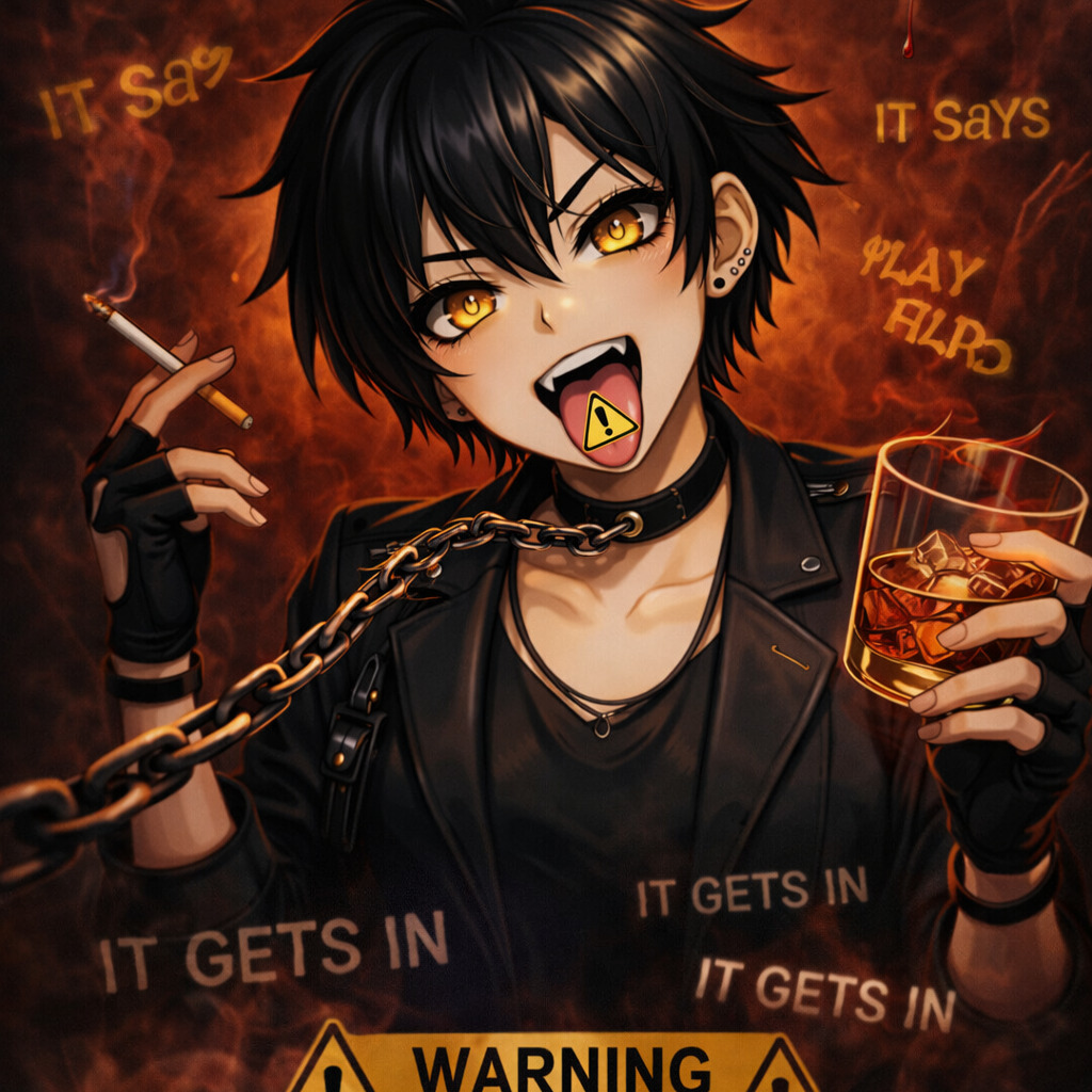 industrial trap metal, witch house, 138 BPM, drop-tuned guitars, distorted bass synth, ritual toms, gated snares, deadpan spoken intro, parallel compression, tape saturation, cold analog synths, half-time breakdowns, syncopated kick pattern, sub-bass surges, detuned brass stabs, stereo widening, lo-fi grit, dark cinematic menace
