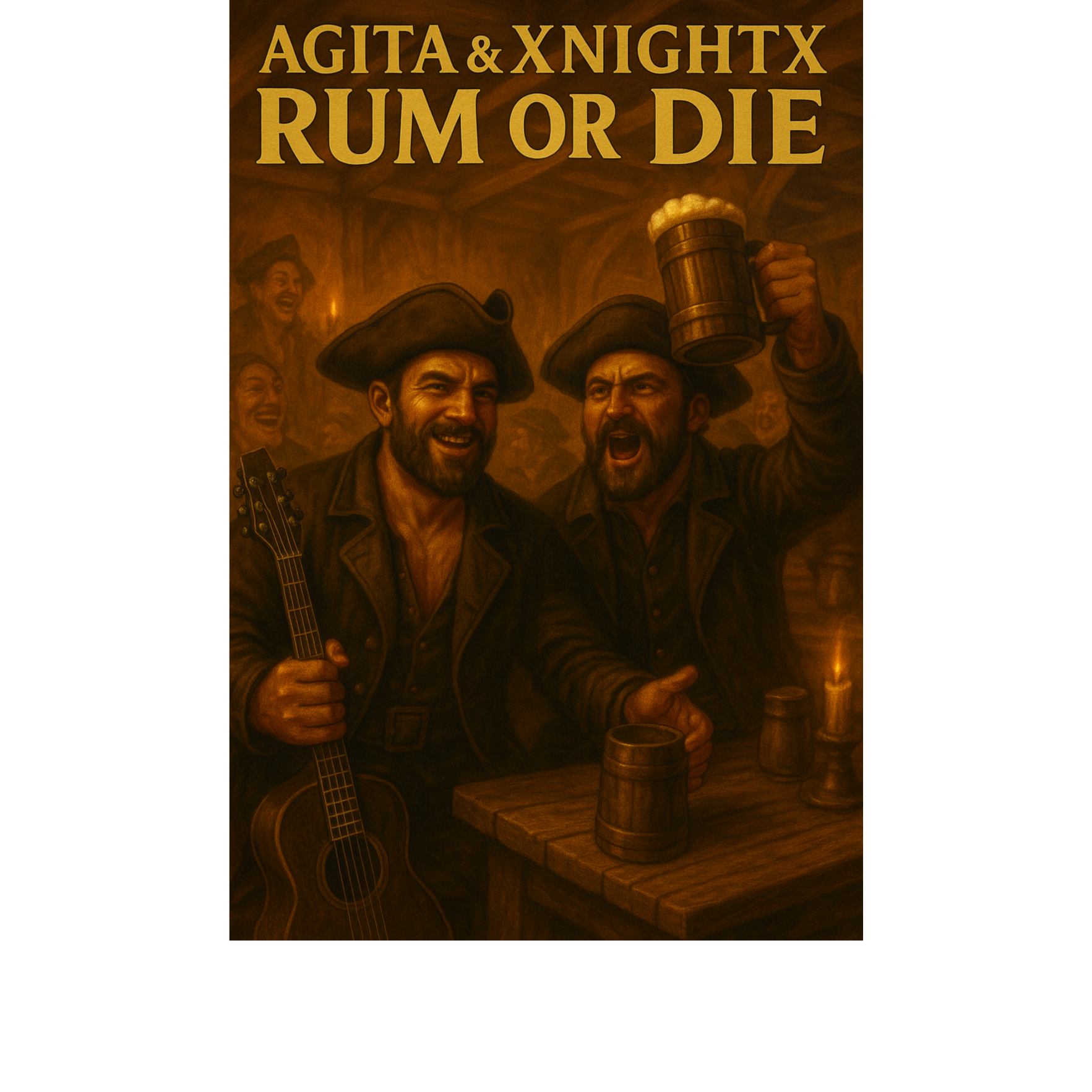 A storm-forged pirate metal anthem combining the fury of modern death metal with the cadence of a sea shanty, 8-string guitars tuned to Drop E deliver rapid tremolo riffs and intricate harmonic runs, paired with lead guitar solos in D Phrygian featuring sweeping arpeggios and tapped harmonics, The rhythm section drives with double-kick drums firing in 32nd-note bursts, blending precision blast patterns with rolling 6/8 maritime grooves, Bass in Drop E locks to the kicks, adding depth through distorted overdrive and occasional slap passages, Over this wall of sound, a hurdy-gurdy drone in G/C and fiddle countermelodies add nautical tension, while accordion and bodhrán accent the rhythmic swing, The arrangement shifts between violent storms of sound and brief atmospheric interludes with ambient ocean wind and creaking hull textures, Massive dynamic builds lead to climactic breakdowns and soaring neoclassical guitar solos, fusing technical death metal virtuosity, ‑ad lib, ‑ad libbing