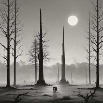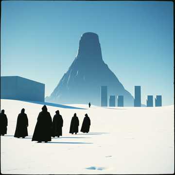Wagnerian music drama, ritualistic and oppressive, in the harmonic world of Das Rheingold and Parsifal, not melodic Wagner, Continuous symphonic scene with whispered male chorus functioning as impersonal instruction, not expression, Orchestra represents physical disruption: low strings, contrabass winds, muted brass, and sustained dissonant harmonic blocks, Avoid melody, Avoid cadences, Avoid tonal center, Slow harmonic rhythm with sudden vertical intrusions, Chorus is whispered, monotone, rhythmically unified, emotionally neutral, Voices act as conduit, not character, No lyricism, No phrasing, No vocal beauty, The Monolith’s arrival is abrupt and unprepared, represented by harmonic interruption rather than thematic development, Music imposes order rather than revealing truth, Scene ends without resolution, with the curse fully internalized but not yet acted upon, ‑lyrical choral writing, ‑hymn-like harmony, ‑expressive dynamics, ‑melodic declamation, ‑mystical or reverent tone, ‑awe or wonder, ‑romantic mystery, ‑talian bel canto, ‑lyric opera, ‑arias, ‑recitative-aria alternation, ‑pretty melody, ‑romantic warmth, ‑sentimentality, ‑cinematic underscore, ‑Hollywood epic scoring, ‑trailer music, ‑ambient pads, ‑choir washes, ‑choral sustains used as texture, ‑minimalism, ‑ostinato-based film music, ‑tonal resolution, ‑heroic fantasy, ‑choral Latin, ‑Gregorian chant, ‑pop, ‑rock, ‑electronic music, ‑modern soundtrack tropes, ‑emotional catharsis, ‑hopeful endings, ‑fade-outs