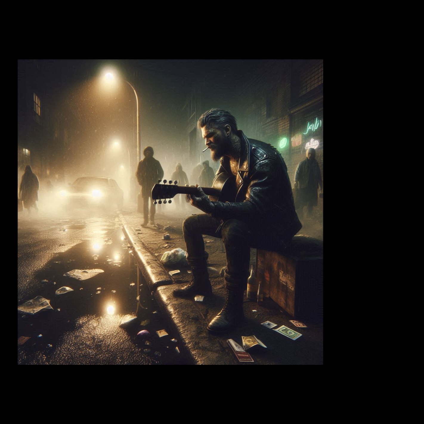 Roaring in with dirty, overdriven guitars and a growling neo-rockabilly bass line, this fusion track is anchored by aggressive, punchy hip-hop drums, Male vocals deliver power and swagger, mixing sung hooks and hard-edged, rap-inspired verses, The texture stays tense and electric throughout
