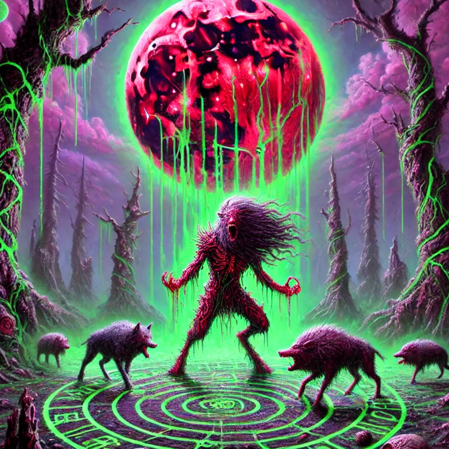 Male vocals (deep, raspy, aggressive, staccato in places, snarls and growling)