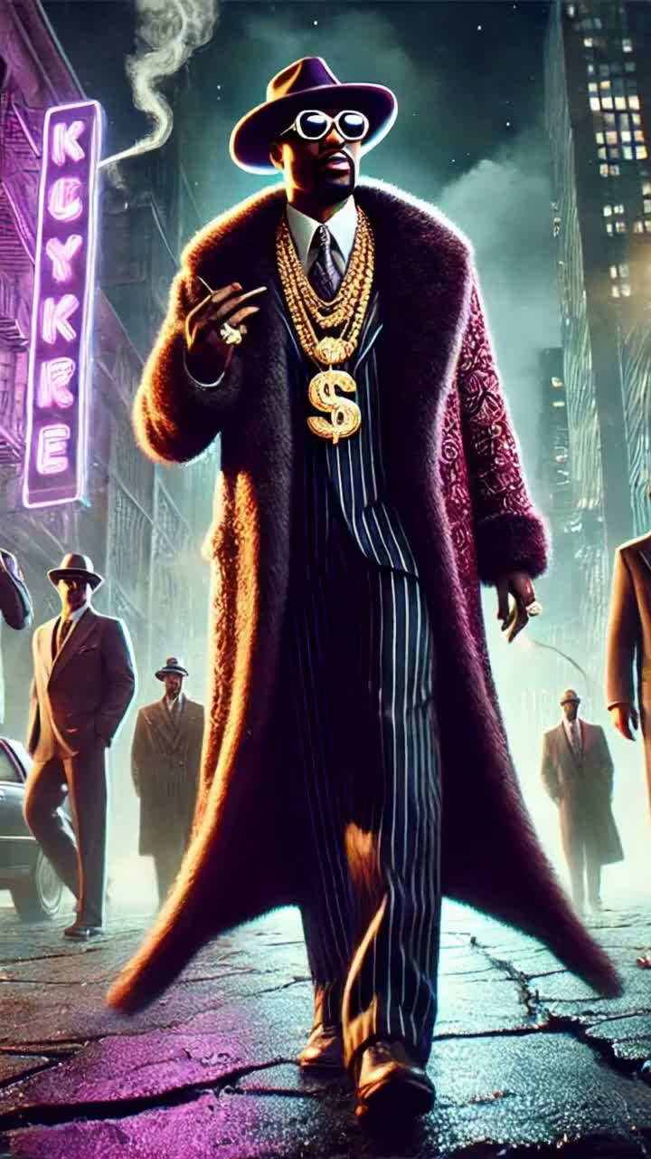 A gangsta rap track with a repeating, ominous keyboard hook, deep bass drum hits, snappy hip-hop claps, and old-school turntable scratches, The beat stays gritty and steady at a moderate tempo, Aggressive, brash vocal delivery mixes rhythmic taunts with melodic hooks for swagger