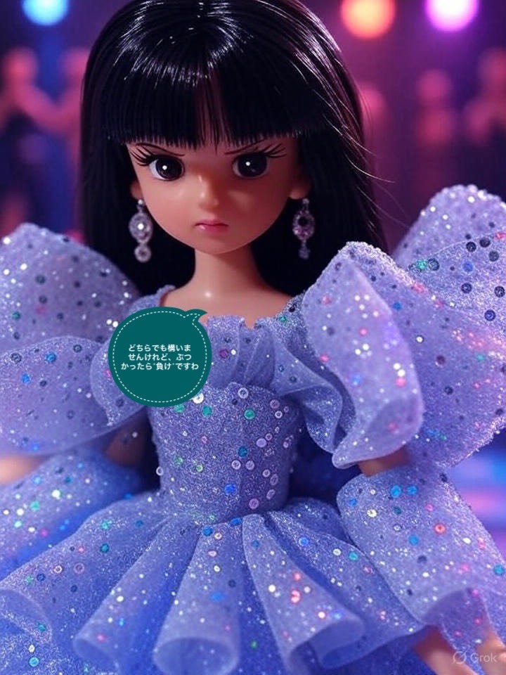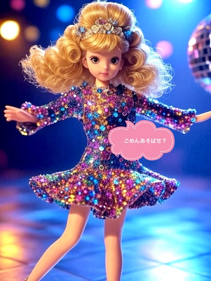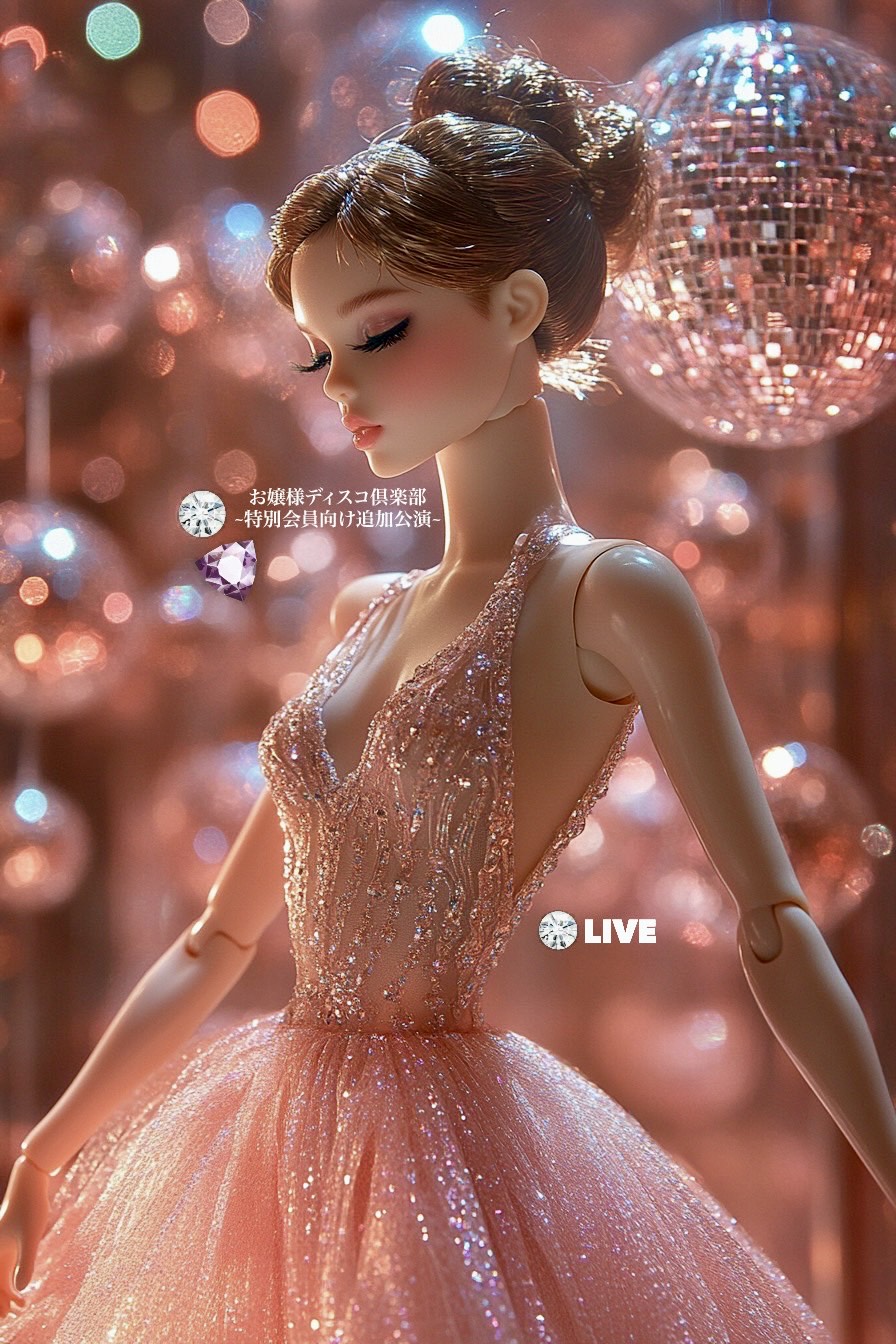 Randomizer, 1978-1983 Style Disco à ShÅwa Kayo Glam à Retro-Future Cabaret Funk / BPM: 118, Steady, glittering four-on-the-floor groove with full analog warmth, Vocals: Japanese female vocal group, Lead vocal is elegant, theatrical, and expressive â no joke tones, Spoken lines are delivered like a noblewoman hosting a midnight ball, Backing vocals: layered falsettos with close mic, airy harmony textures, perfectly in-sync, Rap part (âBabe-samaâ): slight voice shift â more forward, glamorous, and confident, like a charismatic heiress, No silly tone or parody, Instruments: real live bass (funky and deep), disco wah guitar, analog string ensemble (Mellotron or Solina-style), electric clavinet, reverb-heavy piano, and lush vintage synth pads (ARP/Solina/Jupiter style), Add bold brass stabs and sweeping filter disco transitions, FX: soft vinyl crackle, filtered crowd murmur, faint mirrorball shimmer FX, Bridge: cinematic spoken whisper with high heel echo + reversed cymbals, Final chorus: r