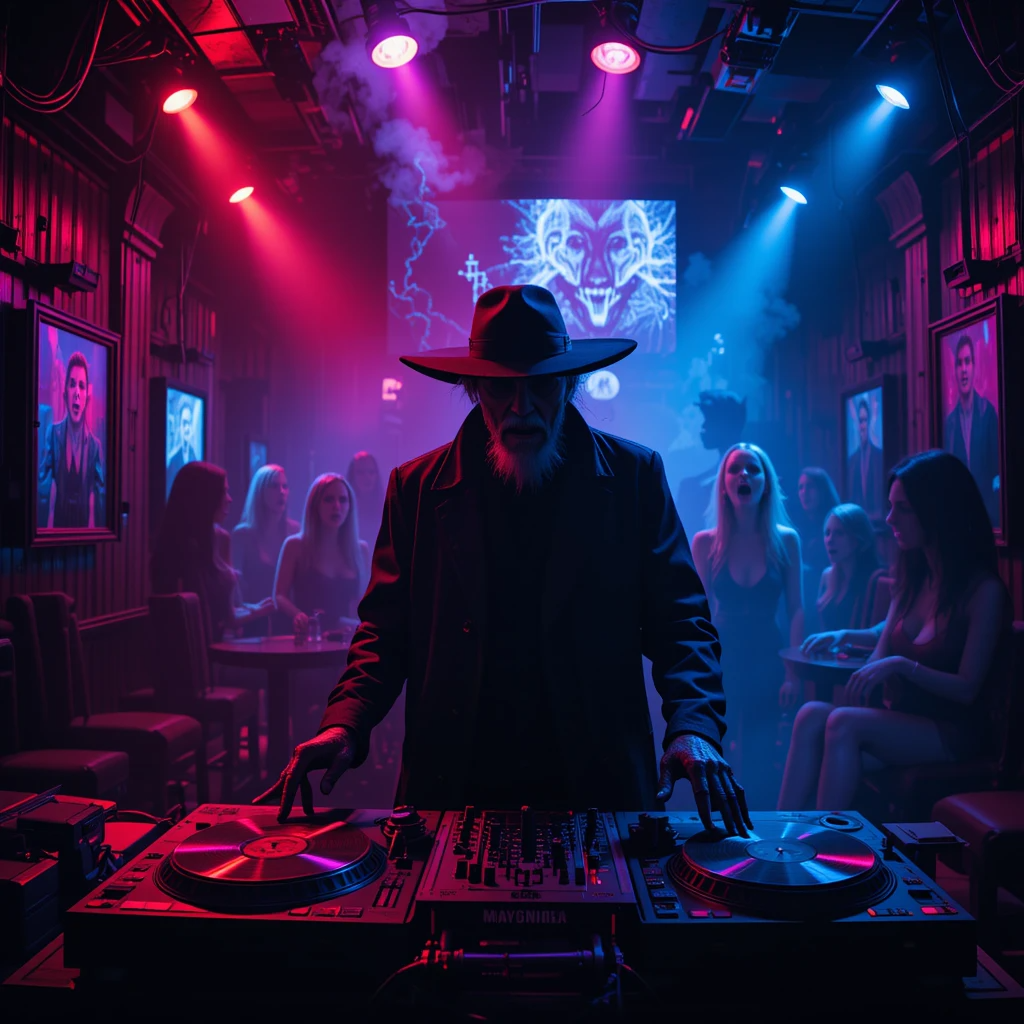 Style: Dark Techno, Industrial Dance, Horror Electro, Cinematic Horror, Mood: Groovy, sinister, escalating fear, disturbing, Tempo: Starts at 124 BPM, collapses into no rhythm, Vocals: Deep male lead, whispered voices, female screams, distorted FX, Theme: Club turns into horror movie, loss of control, psychological fear