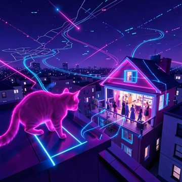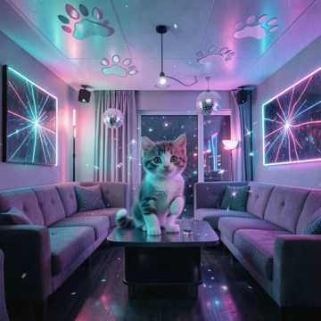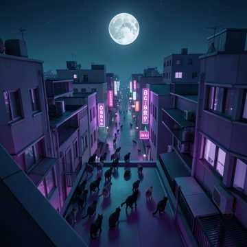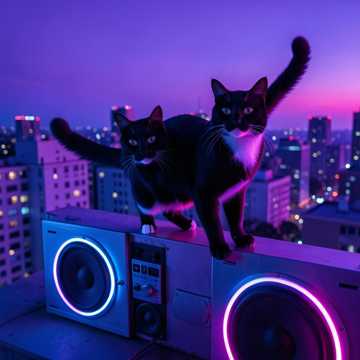 Smooth late-night city, chill jazzy-electronic, synth pads, soft glitches, relaxed 2000s R&B influence, cat swagger