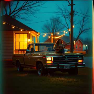 Create a fun, sweet, modern country love song with a male lead vocal and strong summer backroads energy, The track should be upbeat and playful with a warm, feel-good groove, Instrumentation includes acoustic guitar, bright electric guitar twang, steady drums, bass, and light fiddle or steel accents, The vocal delivery should be relaxed, smiling, and genuine, capturing young love, freedom, and simple joy, Themes include summer nights, pickup trucks, back roads, laughter, stolen kisses, and falling in love without pressure, The mood is joyful, nostalgic, and romantic, evoking windows-down drives, fireflies, and small-town Texas summers, Keep the sound modern, radio-friendly, and sweet—avoid heavy pop production or exaggerated country clichés