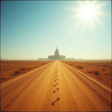 Narrative Country-Folk, 70 BPM, [Cinematic sound of wind and dry gravel footsteps], [Raw acoustic guitar picking], [Deep, gravelly male vocals - half spoken, half sung], [Harmonica solo in minor key], [Warm analog feel]