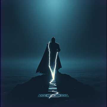 A heavy metal track with a driving tempo of 120 BPM in the key of E minor, The song features a male vocalist with a powerful, clean baritone voice, The instrumentation includes distorted electric guitars playing power chords and melodic riffs, a prominent bass guitar providing a strong rhythmic foundation, and a drum kit with a consistent kick and snare pattern, accented by cymbal crashes, The song structure follows a typical verse-chorus format with an instrumental intro, a guitar solo section, and an outro, Production elements include heavy distortion on guitars, a clear and present vocal mix, and a powerful drum sound with reverb, The melody is primarily diatonic with some chromatic passing tones, and the chord progression is largely based on minor keys, creating a dark and epic atmosphere