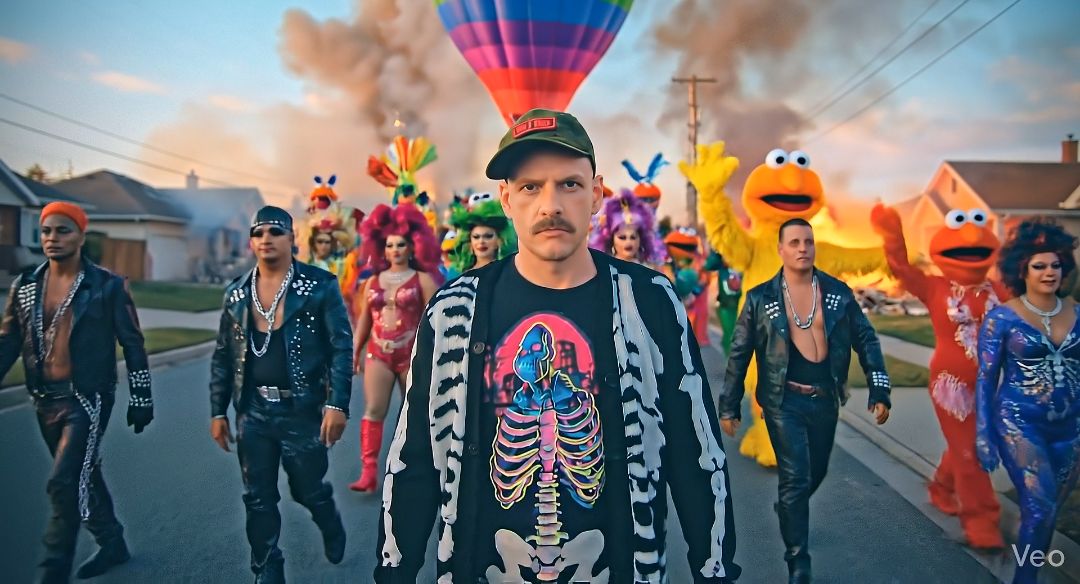 experimental song, basse dynamique, pop disco, basse électronique, basse syncopée, voix masculines, lignes de synthé distordues, indie expérimentale, rythme puissant, synthé sombre, applaudissements rythmiques, Musique EDM énergique avec des synthés puissants, psychedelic