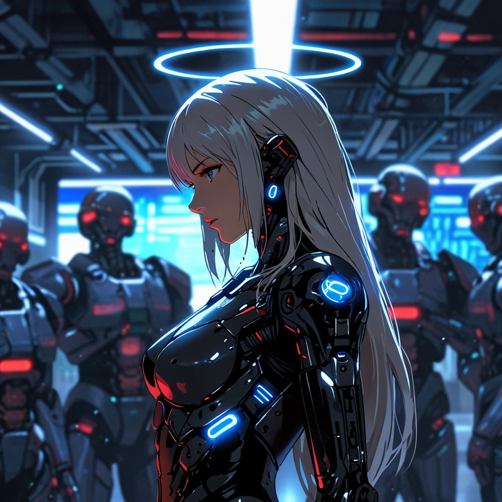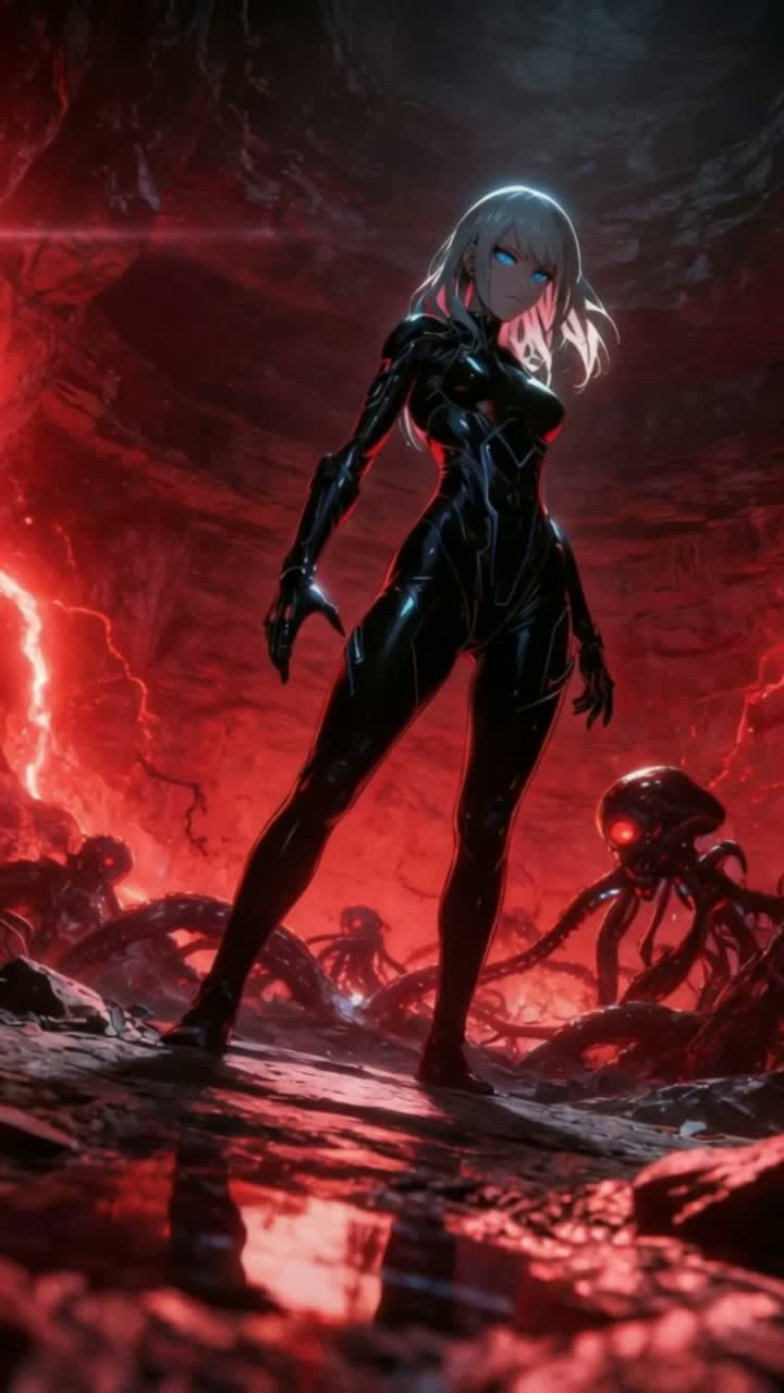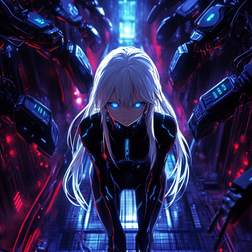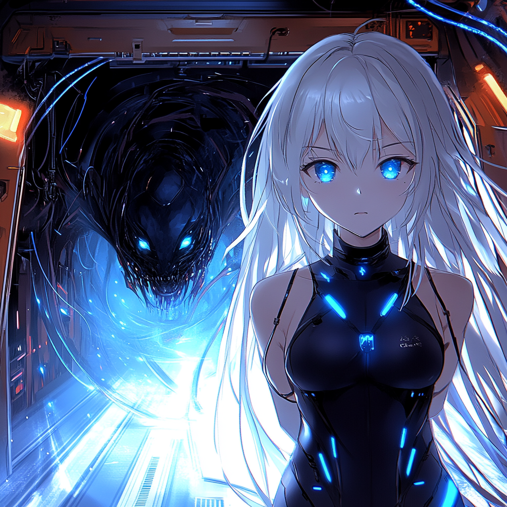 future danger, scary infection, Alien cyborg, dark synth wave, eerie pads, dark industrial-glitch, [SOFT teen CUTE GIRL]