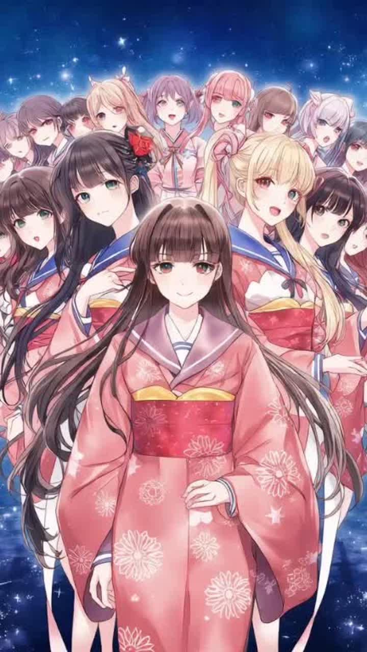 performance dynamic formation dance synchronized with vocal switch elegant idol choreography cyber stage lighting mixed with japanese aesthetics kimono inspired fashion neon meets tradition
