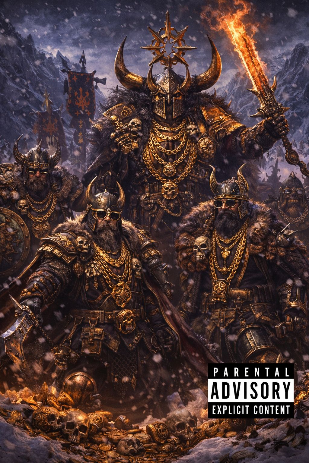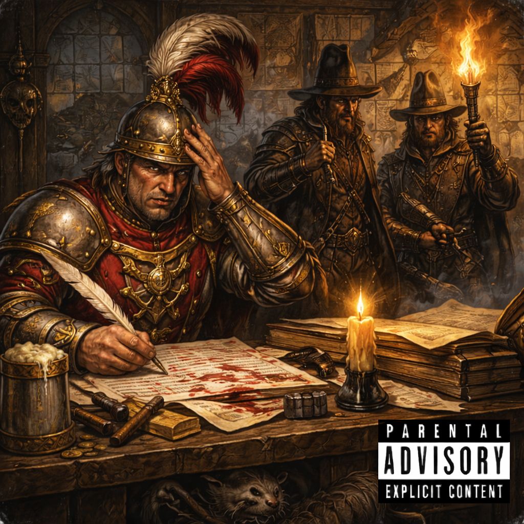 90s Hardcore Horrorcore, War Rap, Slow, crushing tempo, Minimal melody, pounding drums, Chant-backed hooks, battlefield cadence