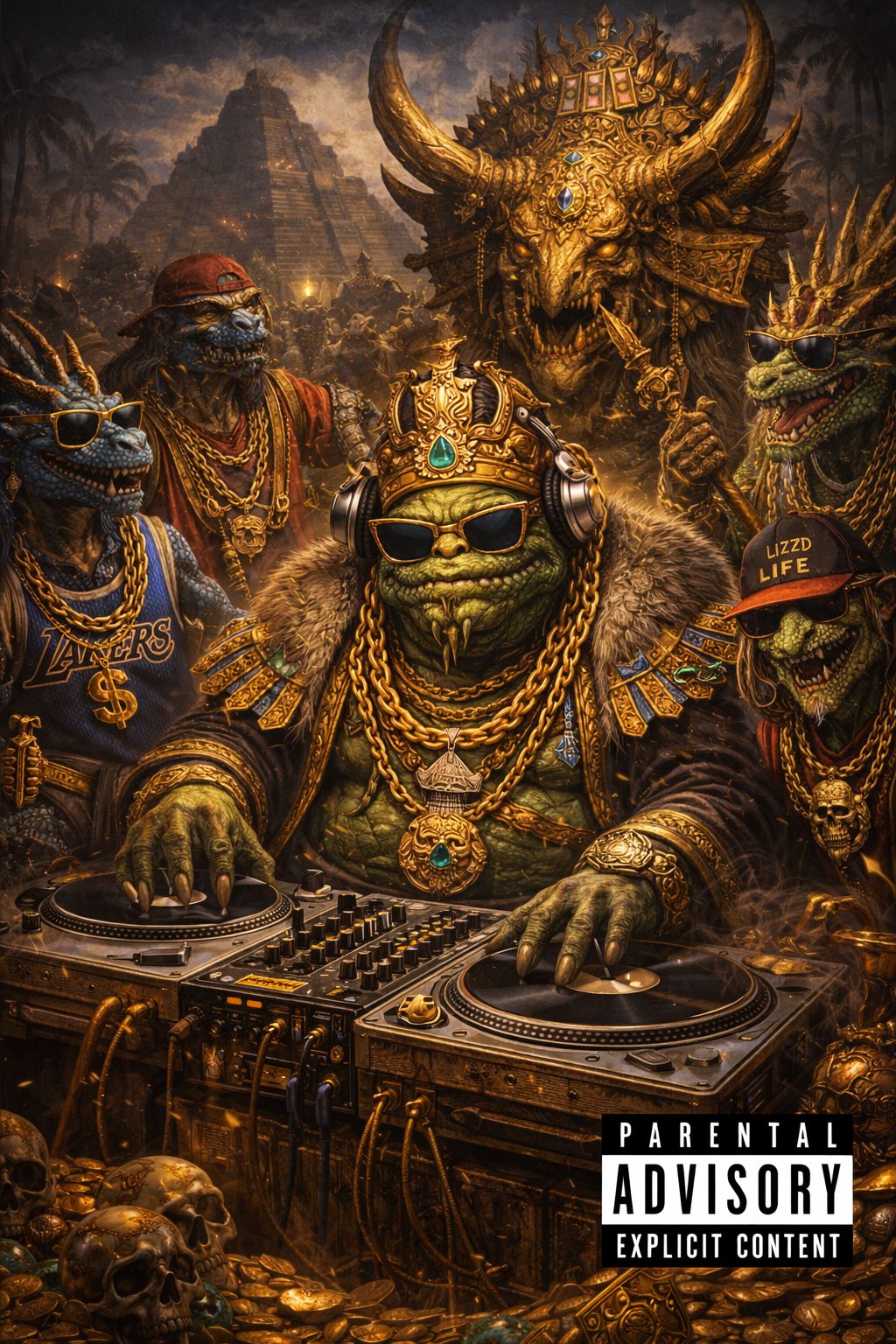 Sistrum, 90s Old-School Story Rap, Regal, Spoken Word, Slow tempo, heavy bass, minimal drums