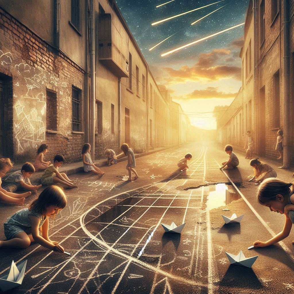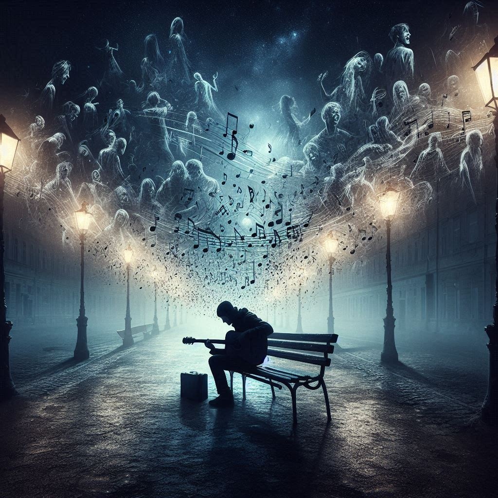 A melancholic, yet playful acoustic guitar melody reminiscent of whimsical children's songs
