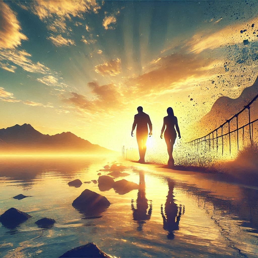 Slam, poetic ballad, piano, orchestral strings, male and female vocals with gentleness and emotional depth
