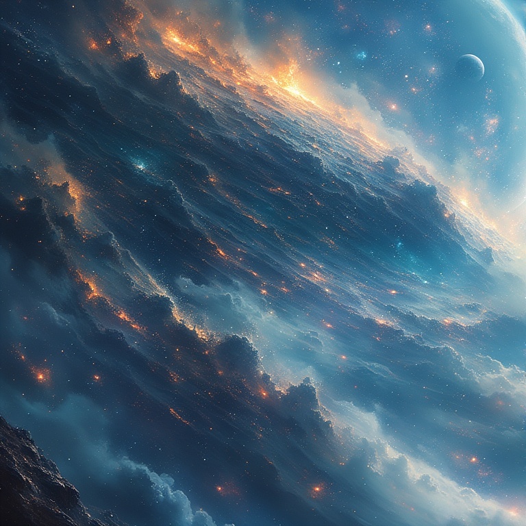 Warm ambient pads drifting through space, shimmering synth layers, soft electronic pulses, quiet rhythmic fragments, smooth textures, slow evolving harmony, subtle motion, meditative sci-fi environment, No vocals, No voice
