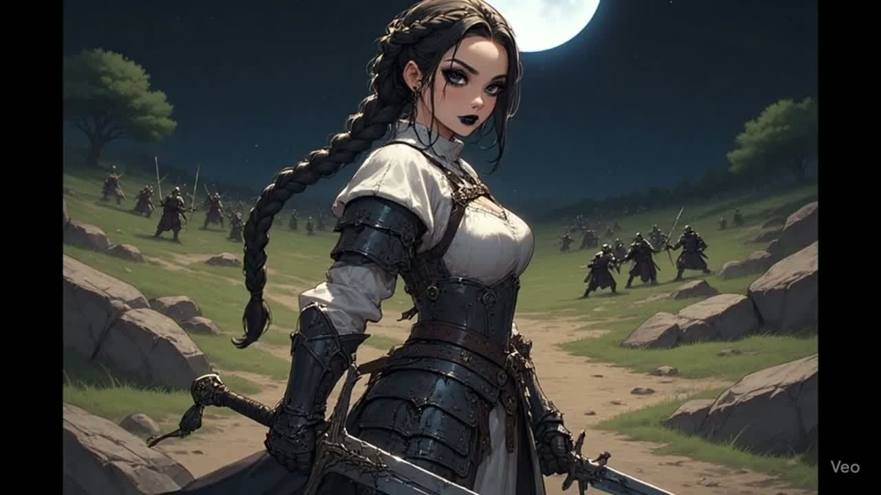NWOBHM featuring raw, dual-guitar harmonies, galloping rhythms, and high-pitched, operatic vocals with fantasy and historical themes, creating an anthemic, fist-pumping heavy metal sound, Combined with a sound that delivers dark, pulsating synthesizer waves blended with distorted electronic beats, crafting cinematic retro-futuristic soundscapes that evoke 1980s horror films and neon-lit cyberpunk aesthetics through intense, driving compositions, Features a neo-classical dueling guitar solo full of emotion and feeling