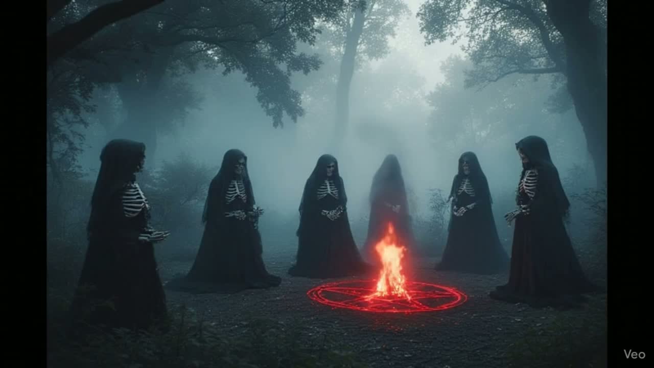 A macabre theatricality of 80's NWOBHM with haunting and catchy melodies, Combines driving guitars, thunderous drums, and ethereal vocals that shift between cavernous lows and chilling highs while combining the sound of visceral electronic music that pulses with dark energy, blending retro synthwave with industrial textures, Thumping basslines interweave with distorted arpeggios, creating cinematic soundscapes that evoke neon-lit chase scenes and dystopian futures, Building atmospheric tension through contrasting elements-religious symbolism against rebellious riffs, vintage synthesizers against abrasive aggression creating immersive atmospheres - one through occult rock grandeur and choral arrangements, the other through cold, electronic intensity that feels like a dark soundtrack to an unstoppably violent film, gated reverb snares and tom fills, Vocal structure is progressive, gritty verses, ethereal prechorus, soaring chorus, choir for final chorus and climax, ‑(optional) trap, ‑heavy edm, ‑power ballad, ‑harsh autotune