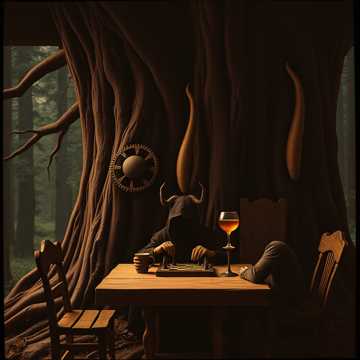 – Rhythm: stomping, earthy riffs with a folk-metal edge, solid and catchy, – Harmony: melodic twin leads, ironic and heroic at once, – Lead: expressive solos with bends and humor, slightly wild but controlled, Keyboards: warm organ layers, subtle folk tones, faint infernal textures; occasional bell and low fire-like FX, Drums: strong, marching, almost danceable groove—hell shaking under pressure, Vocals: clean male vocals with light rasp; storytelling verses, bold anthemic chorus; backing vocals for tavern/chorus feel, Mood arc: addiction → pact → chaos → patience → victory through endurance, Theme: you can’t fix a man by punishment; time