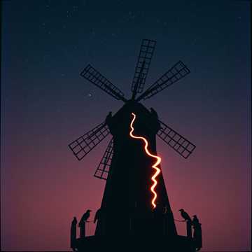 – Rhythm: heavy, grinding riffs with circular motion, cold and ominous like gears and stone, – Harmony: melodic twin leads weaving fate, fear, and hope, – Lead: dramatic, emotional solos with long bends—struggle turning into release, Keyboards: dark atmospheric pads, church organs, subtle choir layers; bell tones, wind, raven-wing FX, distant mill creaks, Drums: powerful, marching, ritual-like—time claiming its due, Vocals: clean male vocals with light rasp; storytelling verses; commanding anthemic choruses; layered backing vocals like a dark chorus of apprentices, Mood arc: calling → initiation → power → sacrifice → rebellion → liberation, Theme: every pow
