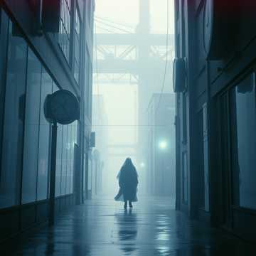 Atmospheric Dark Electronic, Industrial Downtempo, IDM, Instrumental, Minimalist, depressive, ethereal, Main melody with reverse envelope, swelling reverse synth lead, backwards tape texture, reverse delay, Deep distorted sub-bass, slow minimalist quiet lo-fi drums, sad minor key, cinematic, haunting
